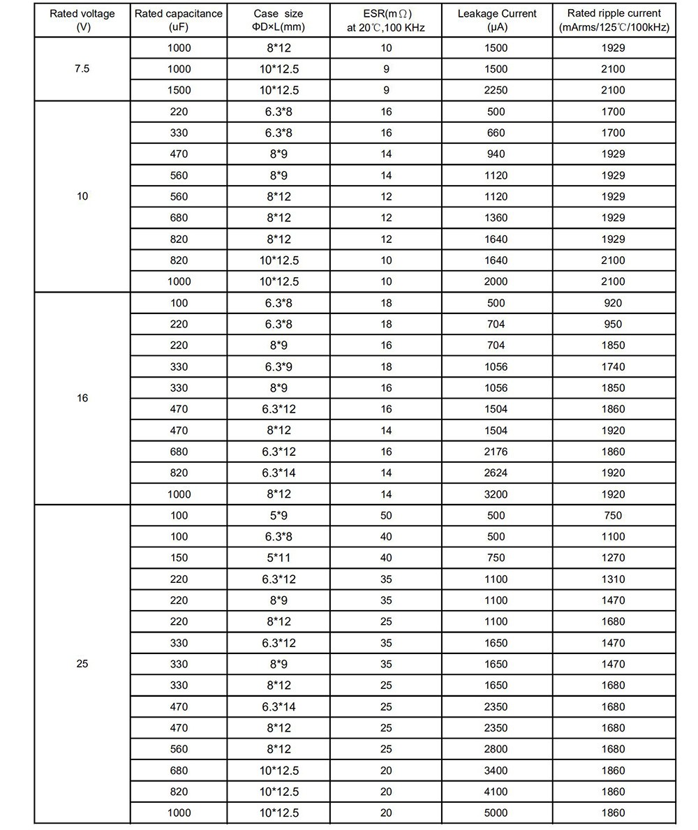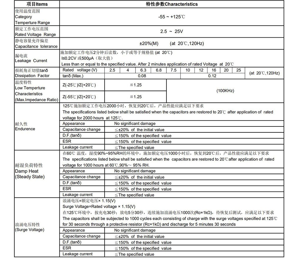 ● Low ESR, high ripple current, high temperature ● Load life of 2000 hours at 125℃ ● RoHS Compliant